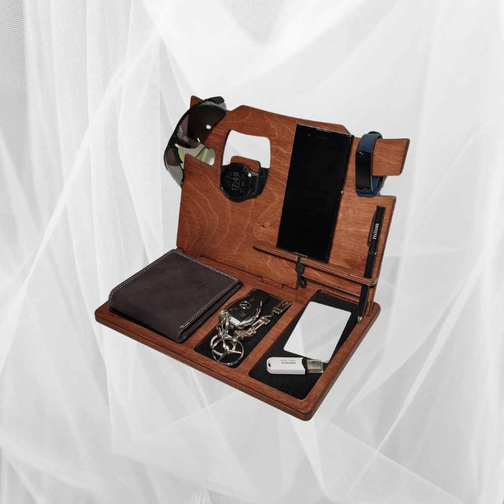 Představujeme dřevěný stolní organizér – osobitý dárek, který si zamiluje každý muž s citem pro detail.