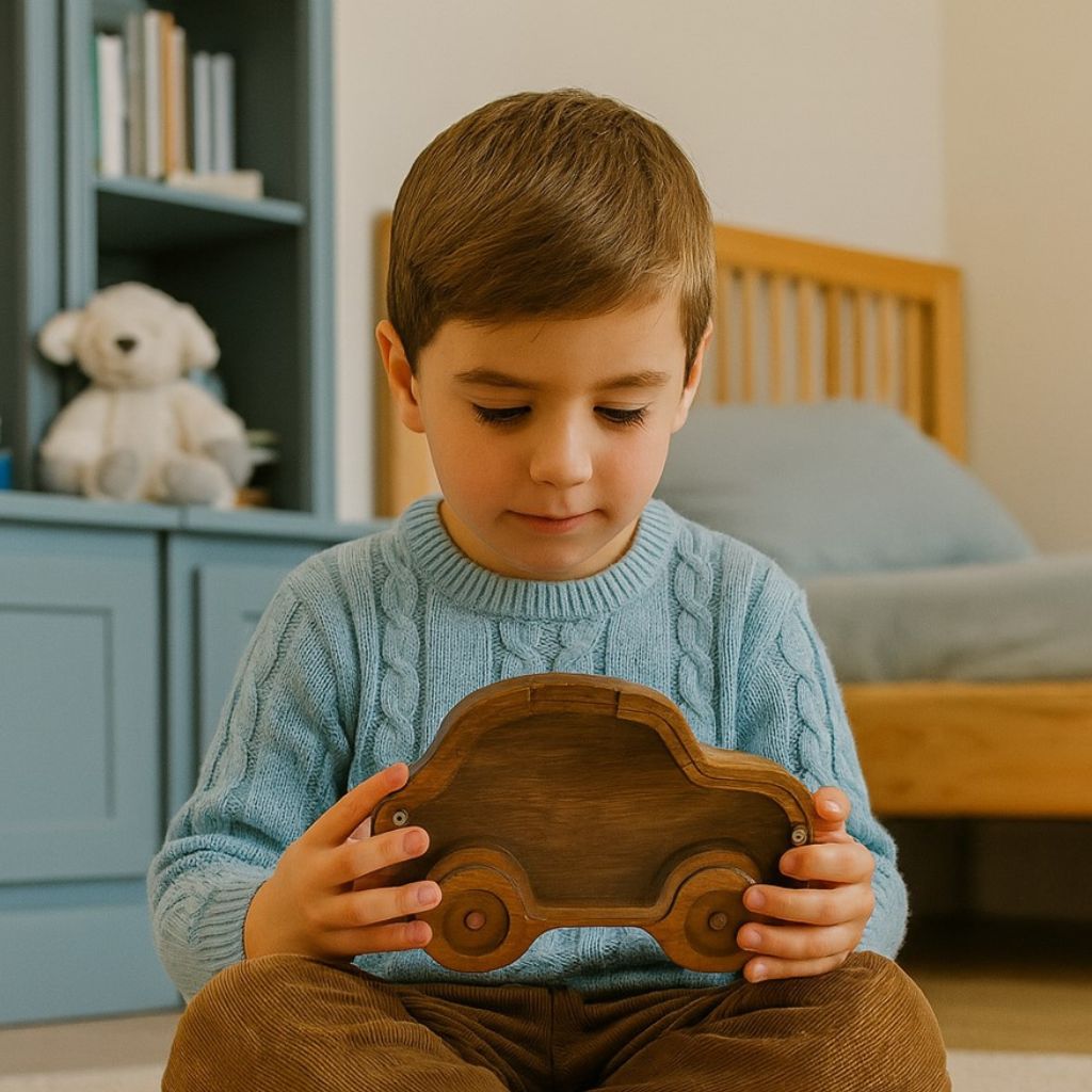 1️⃣ Dřevěná pokladnička – první krok k finanční gramotnosti