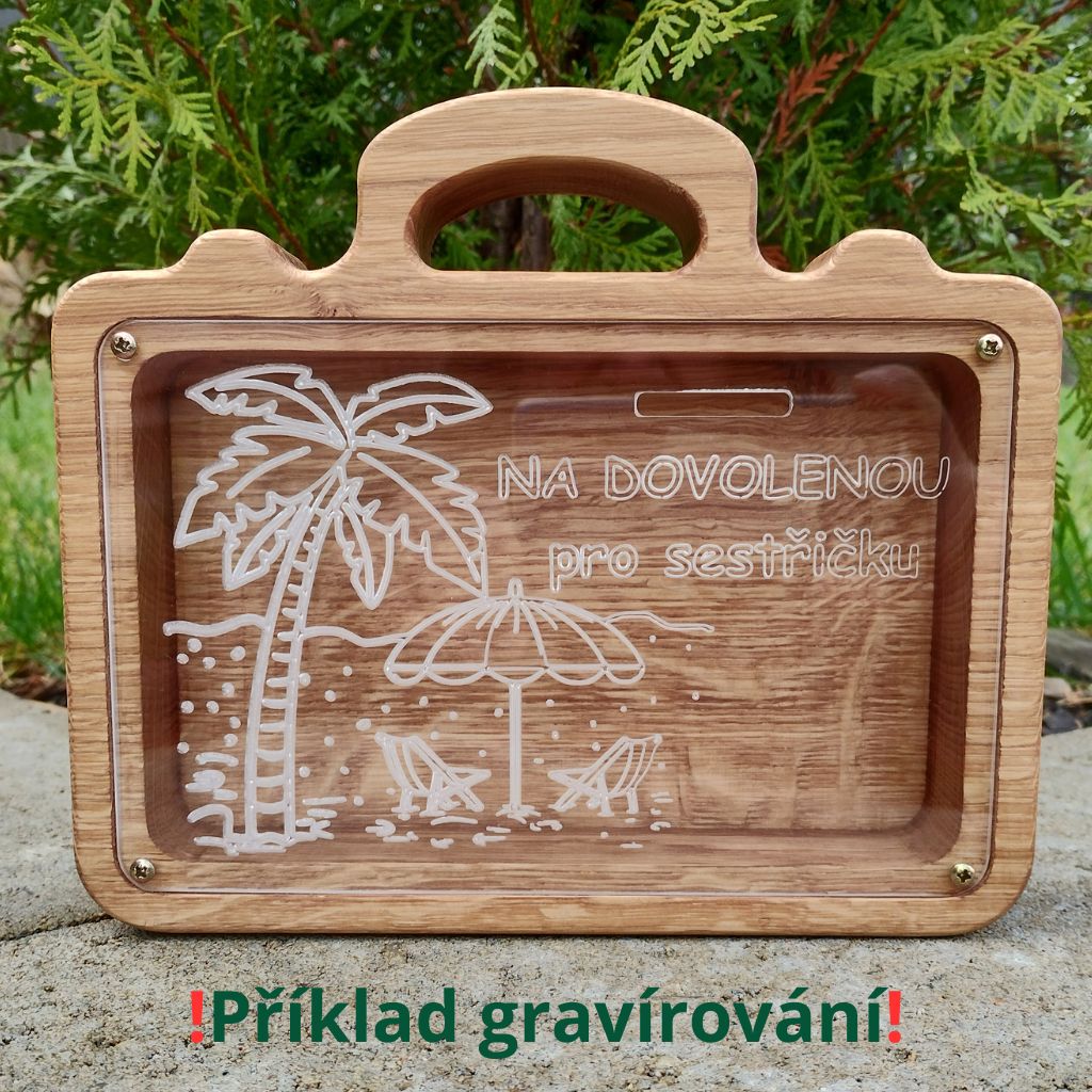 Dřevěné pokladničky mají jednu zásadní výhodu oproti plastovým variantám – působí přirozeně, elegantně a vydrží dlouhé roky. Motiv kufru navíc v dřevěném provedení vypadá velmi autenticky a hodí se do moderního i rustikálního interiéru.