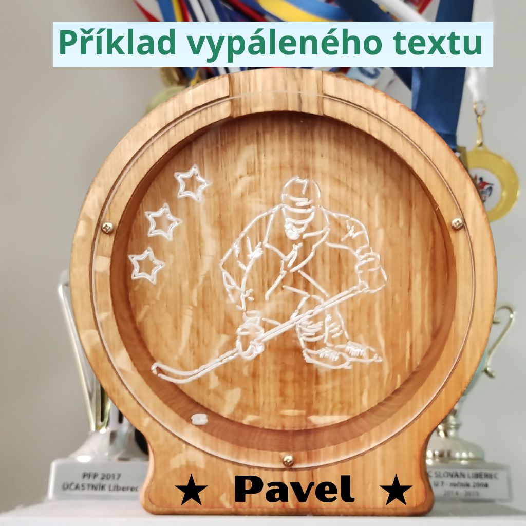 - gravírovaná postava hokejisty na průhledném plexiskle,