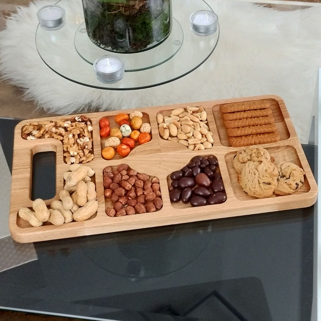 Velmi praktický je také servírovací tác s přihrádkami, kde má každá pochutina své místo a nepomíchá se s ostatními.
