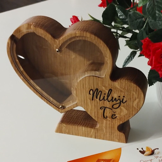 Na plexisklo lze vygravírovat jméno, motiv nebo osobní věnování. Tak se z kasičky stává unikátní dárek, který má hlubší význam.