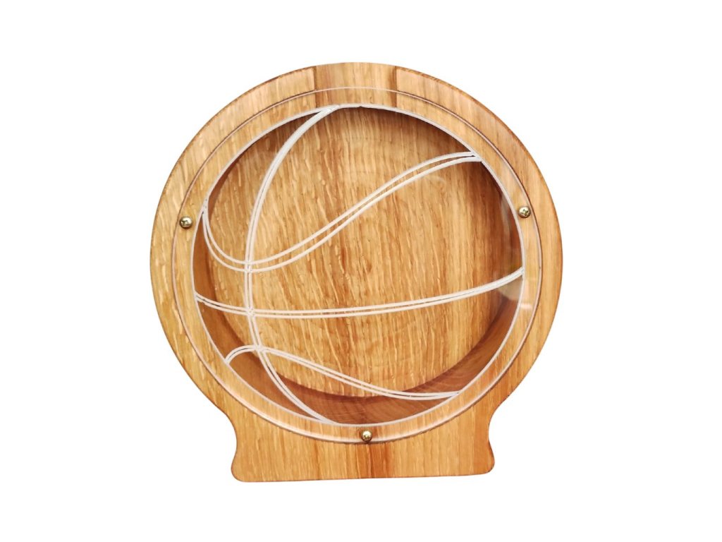 Tato ručně vyráběná dřevěná pokladnička s motivem basketbalu 🏀 je ideální pro každého, kdo miluje oranžový míč a život na palubovce. Na čelní straně z plexiskla je precizně vygravírovaný basketbalový míč, který krásně kontrastuje s teplým tónem přírodního dřeva. Pokladnička je ideální na spoření na nové boty, míč nebo vstupenky na zápas – a zároveň ozdobí každý interiér.