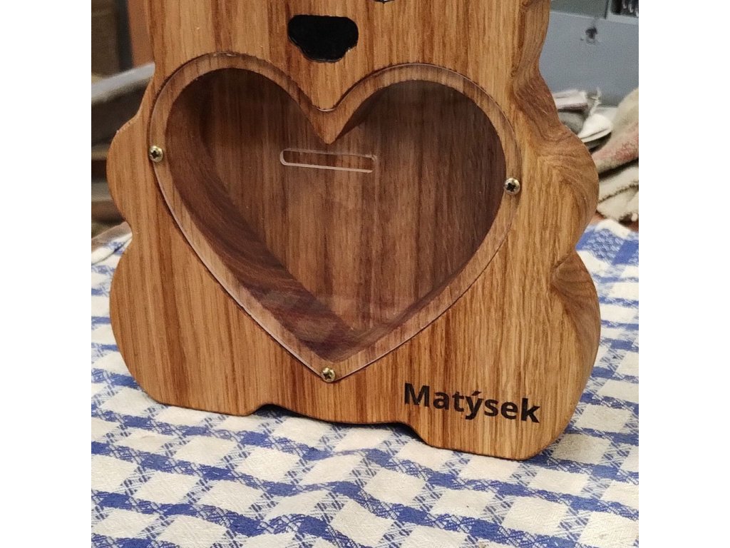 Personalizovaná dřevěná pokladnička – Medvídek se srdcem