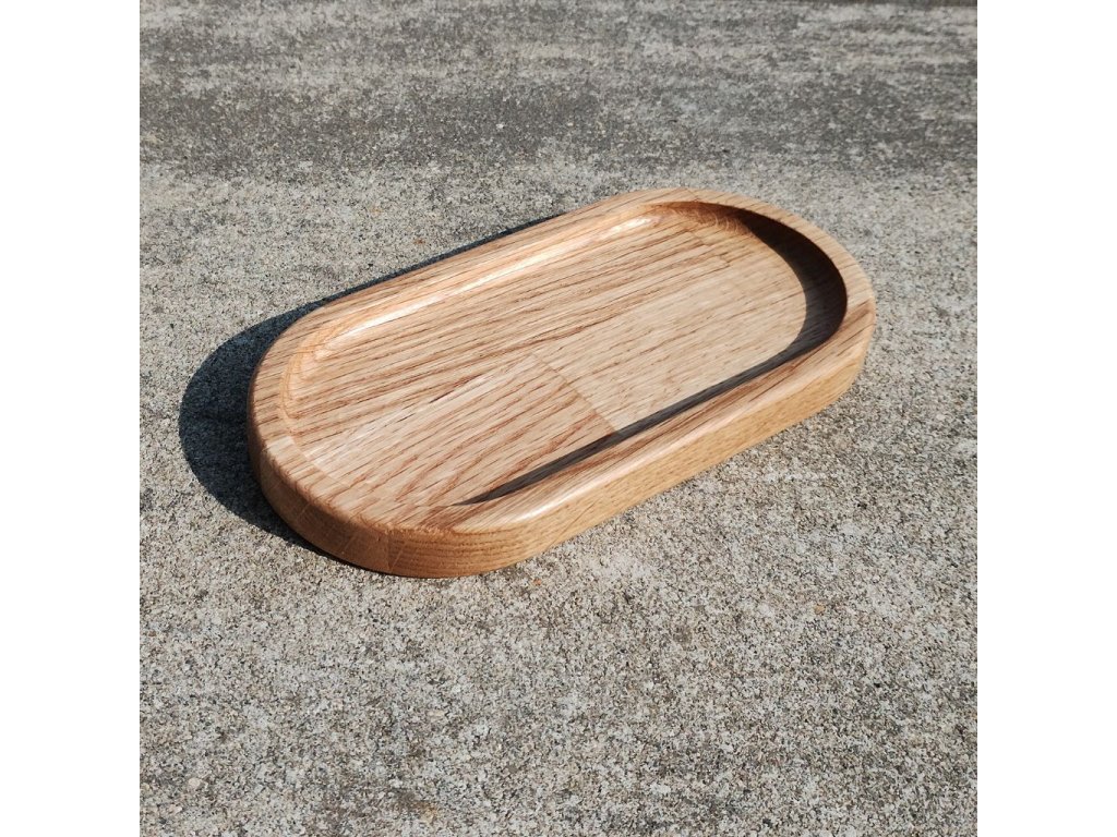 Tento oválný dřevěný podnos na kávu je ošetřen povrchovou úpravou z tvrdého vosku, která chrání dřevo před běžnými skvrnami od kávy, čaje nebo vína. Díky tomu je podnos vhodný pro každodenní používání a zároveň si zachovává přirozený vzhled dubového dřeva.