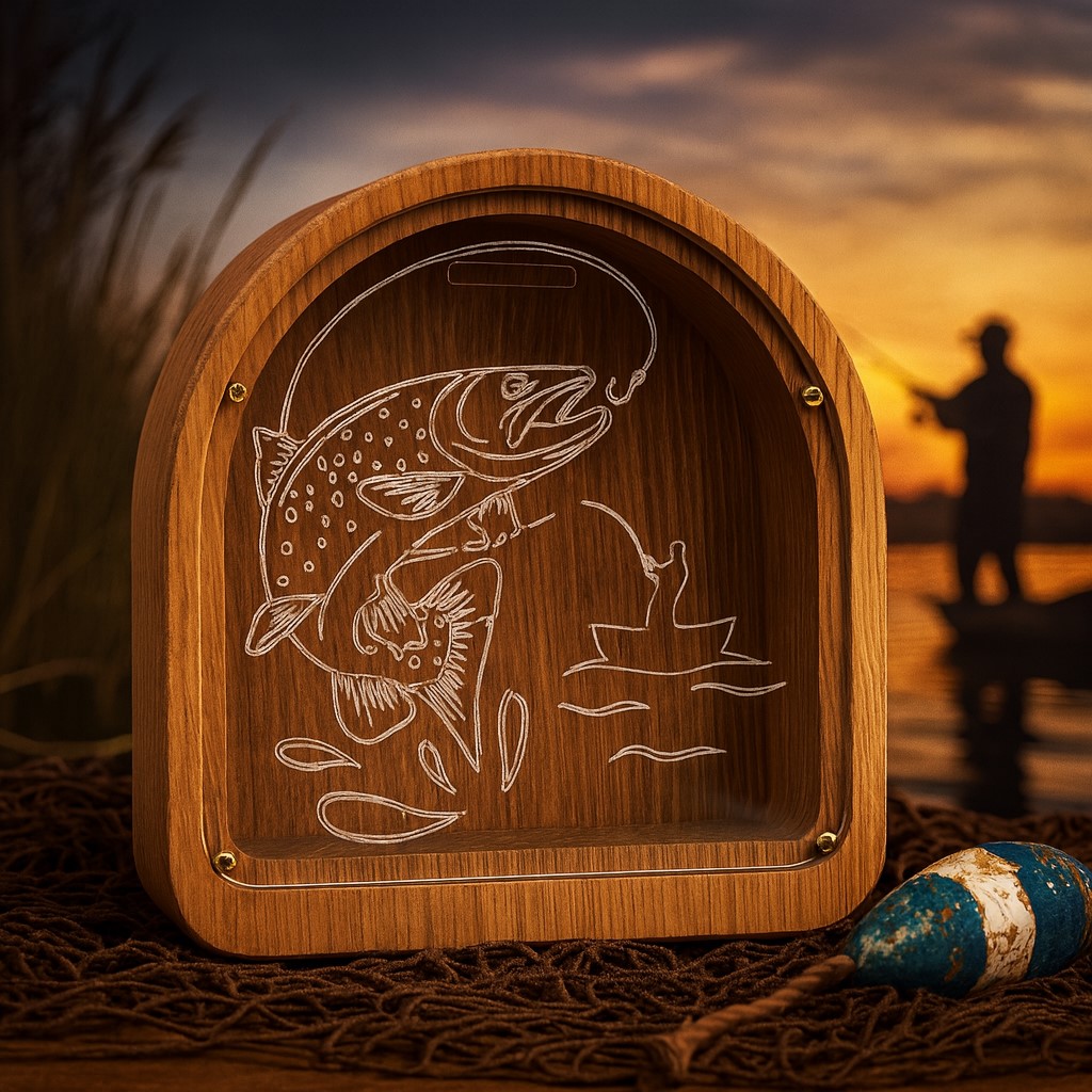 - Pokladnička pro rybáře – masivní dub a pevné plexi, velmi odolná.