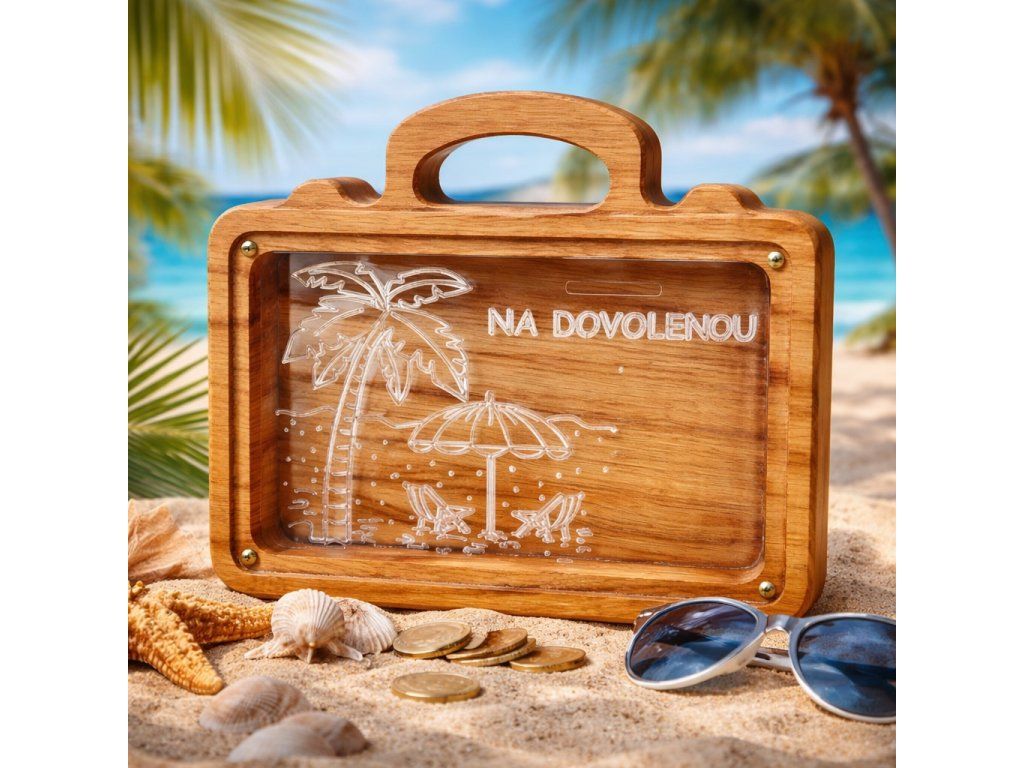 Toužíte po vysněné dovolené a chcete mít motivaci každý den odkládat drobné na cestování? Naše dřevěná pokladnička na dovolenou je ideálním pomocníkem, který spojuje praktičnost, estetiku a osobní kouzlo. Díky elegantnímu designu se stane nejen místem pro vaše úspory, ale i krásnou dekorací do bytu.