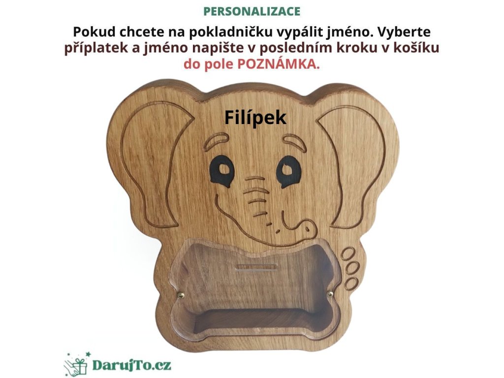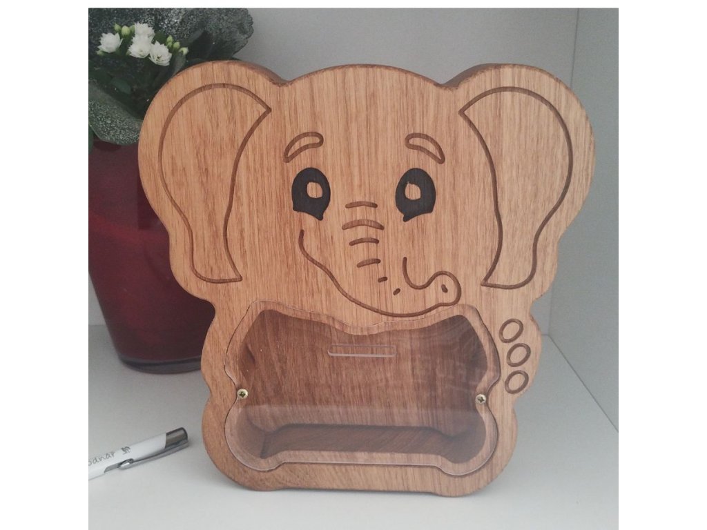 🐘 Dřevěná pokladnička pro děti – slon