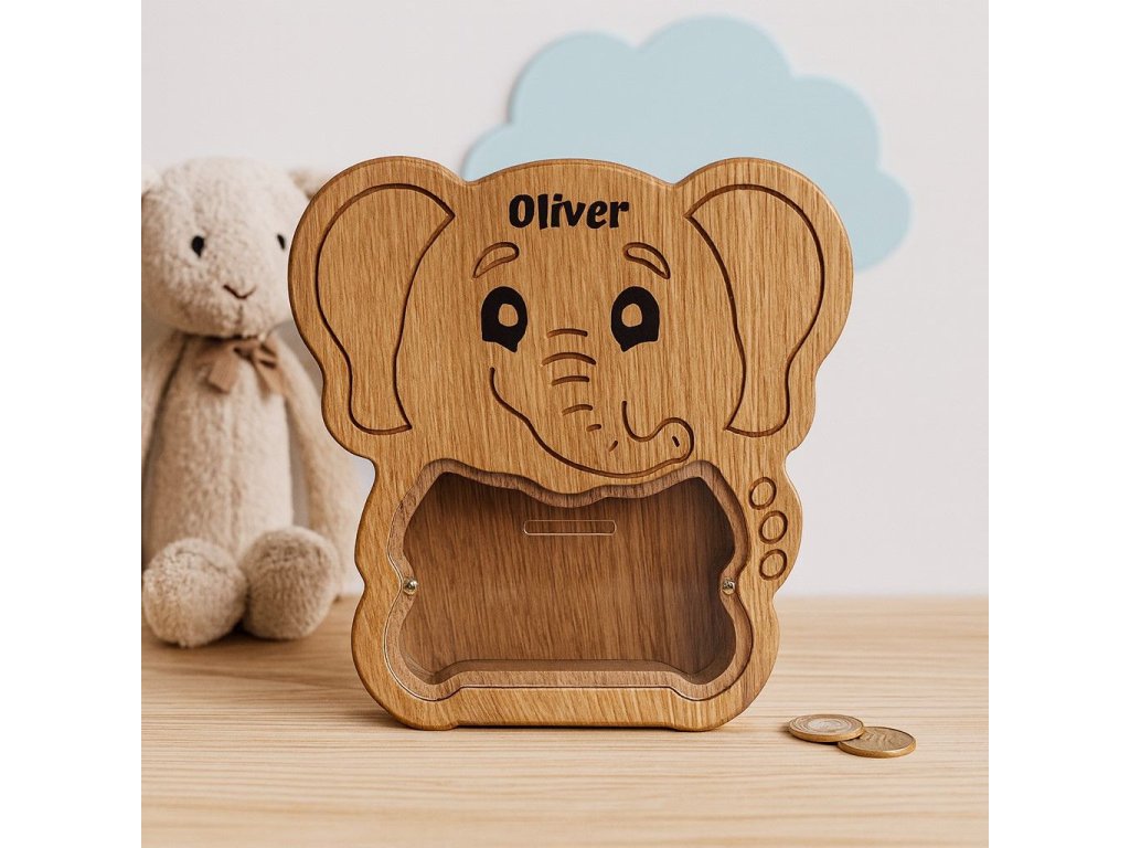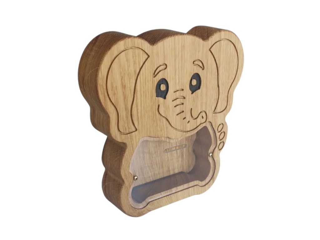 Tento roztomilý sloník z kvalitního dřeva má v bříšku otvor na mince a stane se nejen krásnou dekorací dětského pokoje, ale i skvělým pomocníkem při prvních krocích ke spoření. Díky milému výrazu a příjemnému designu si ho děti zamilují na první pohled.
