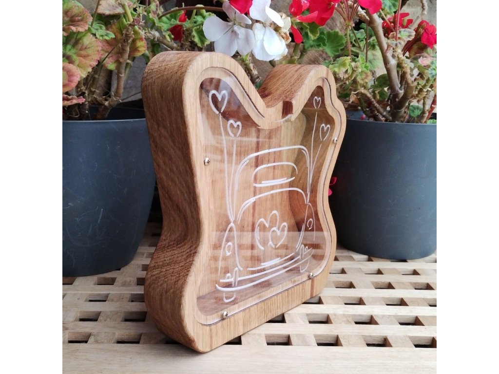 Vyrobená z kvalitního přírodního dřeva, s možností gravírování jmen a data svatby, se stává nejen praktickým místem pro uložení finančních darů, ale i osobní památkou na začátek společného života.