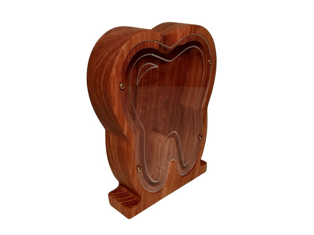 Tato pokladnička zub kombinuje hravý vzhled, funkčnost a přírodní materiál. Je ideální pro děti, které se chtějí učit šetřit zábavnou formou a zároveň si uchovat vzpomínku na důležité dětství okamžiky.