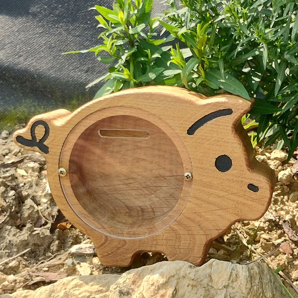 Naše pokladničky prasátka jsou vyráběny z kvalitního dřeva a doplněny čirým plexisklem, díky kterému je vidět, jak se poklad plní. Dřevo je upraveno ekologickými prostředky a může být doplněno o gravírované jméno, motiv či věnování.